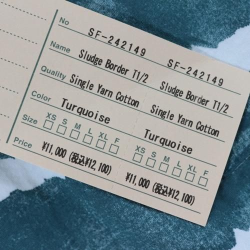 SASSAFRAS ササフラス 24AW Sludge Border T 1/2 - Single Yarn Cotton ボーダー Tシャツ M ターコイズ