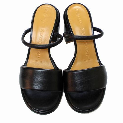 FABIORUSCONI ファビオルスコーニ SASHA 1521 チャンキーヒールダブルストラップレザーサンダル 37 ブラック