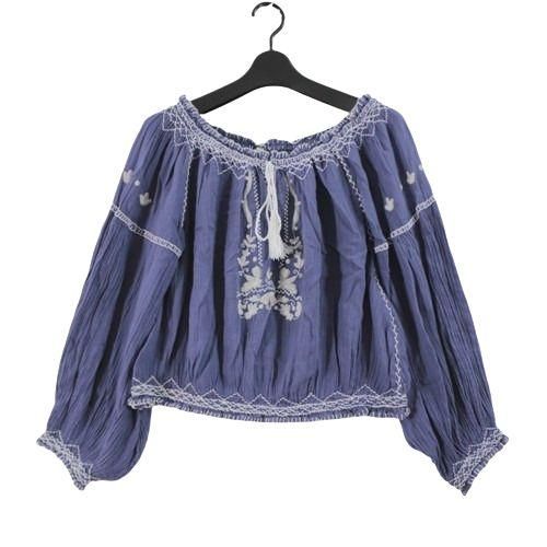 spelll スペル 刺繍 ブラウス S ネイビー