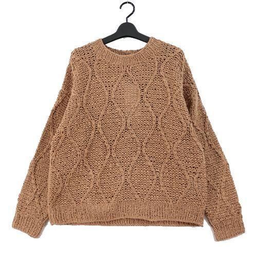 UNUSED アンユーズド 23SS Gourd pattern hand-knitted crewneck sweater. ニット 2 ブラウン